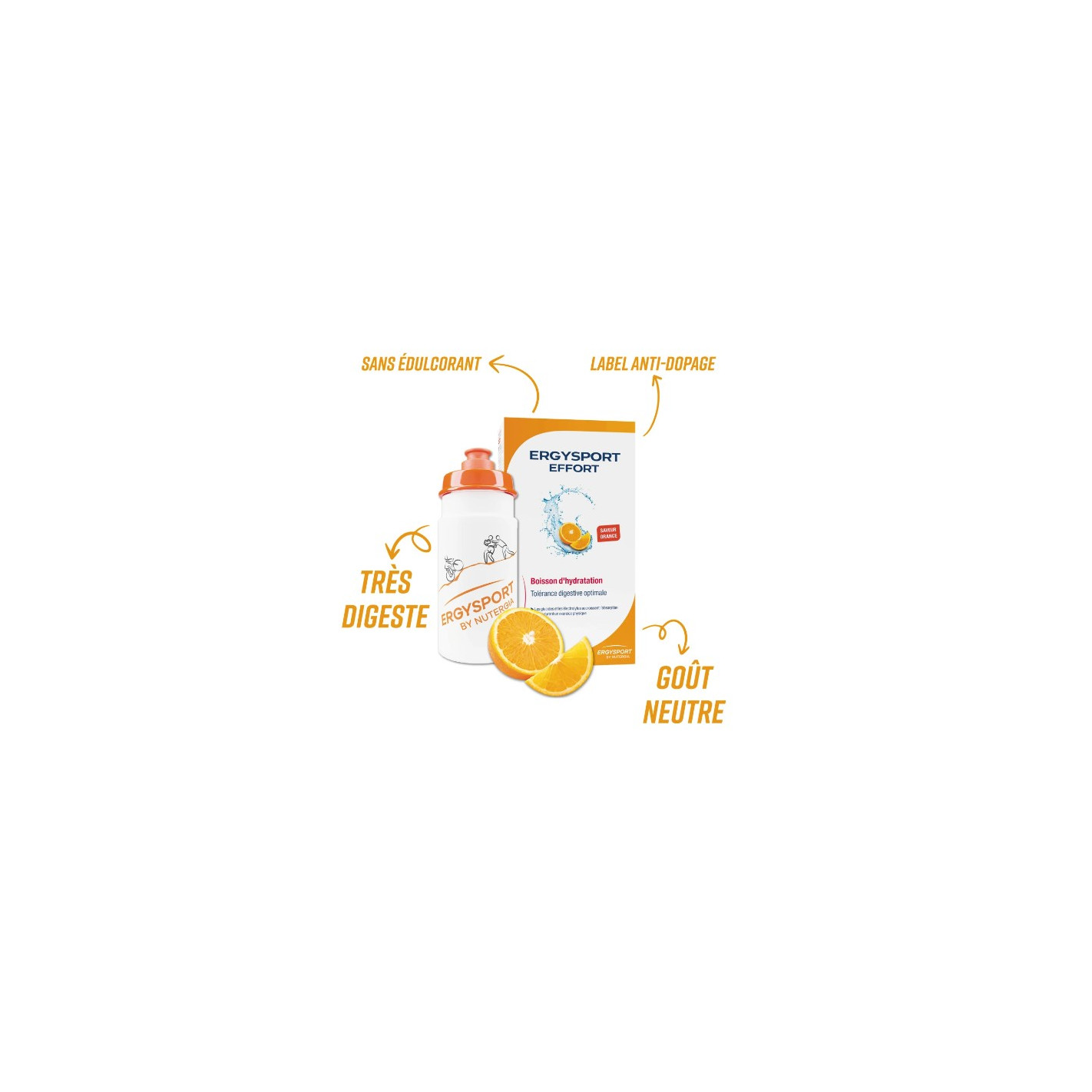 ERGYSPORT EFFORT a été scientifiquement élaboré pour garantir une bonne hydratation pendant l’effort et compenser les dépenses énergétiques.
