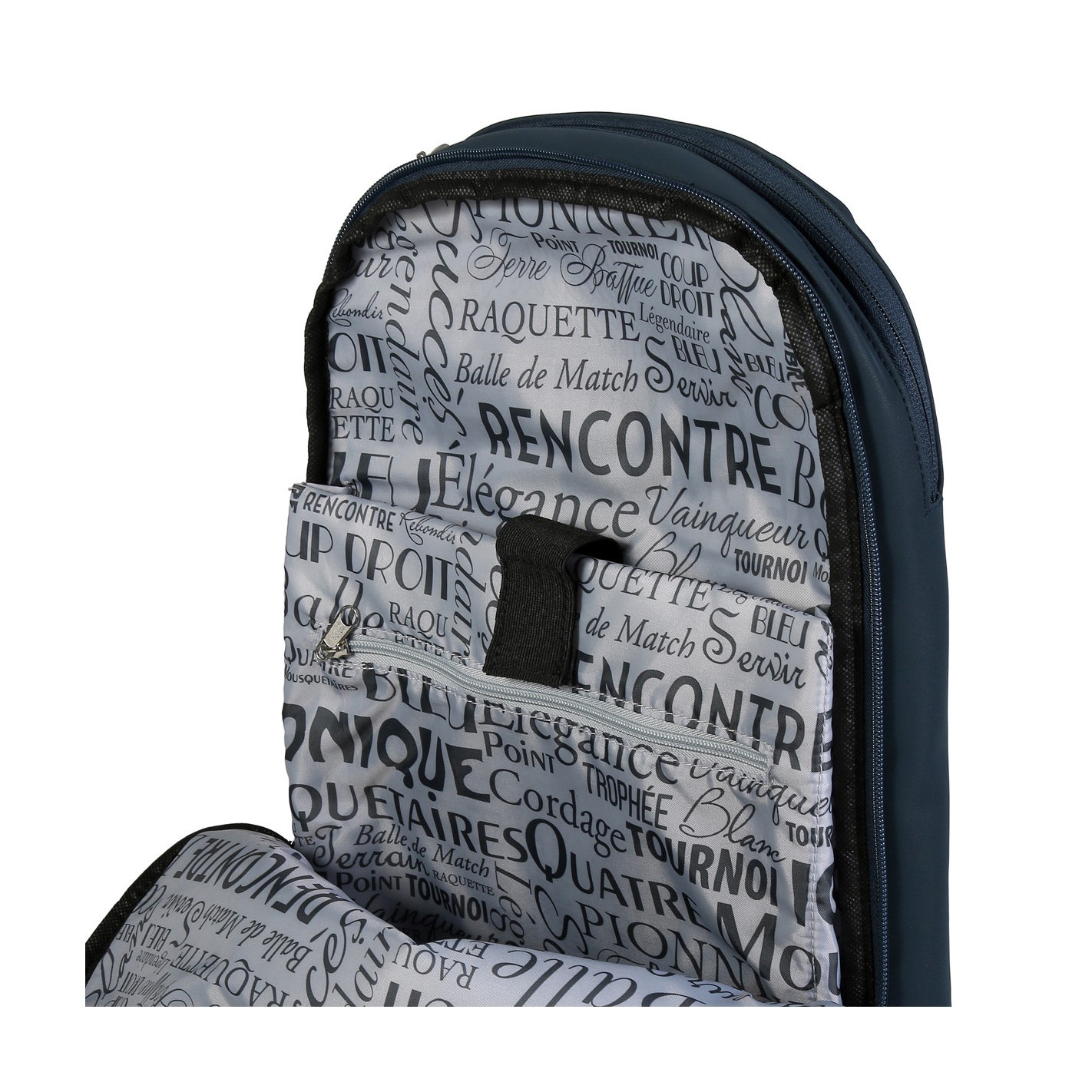 Incarnant l’atmosphère électrisante des sessions nocturnes de Roland-Garros, le sac à dos haute performance Session de Soirée est entièrement bleu marine et permet de transporter tout l’équipement de tennis nécessaire.