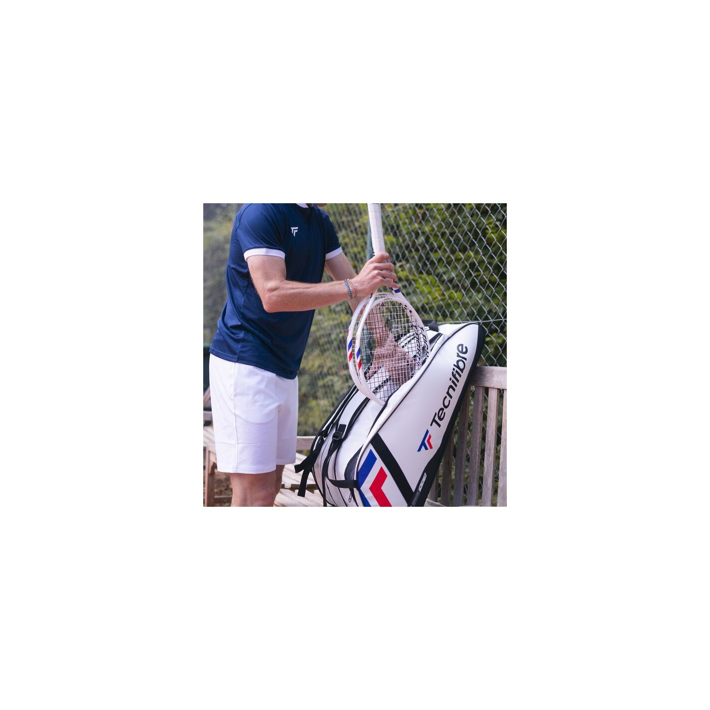 D’un point de vue cosmétique, c'est le summum de l'élégance et de la performance et l’association parfaite avec les raquettes T-FIGHT. Base blanche épurée avec le logo TF en bleu et rouge pour les codes du Tour et de la Team Tecnifibre. Bien sûr, toutes les parties qui pourraient être en contact avec le sol sont sur une matière noire pour résister à l’usure des courts.