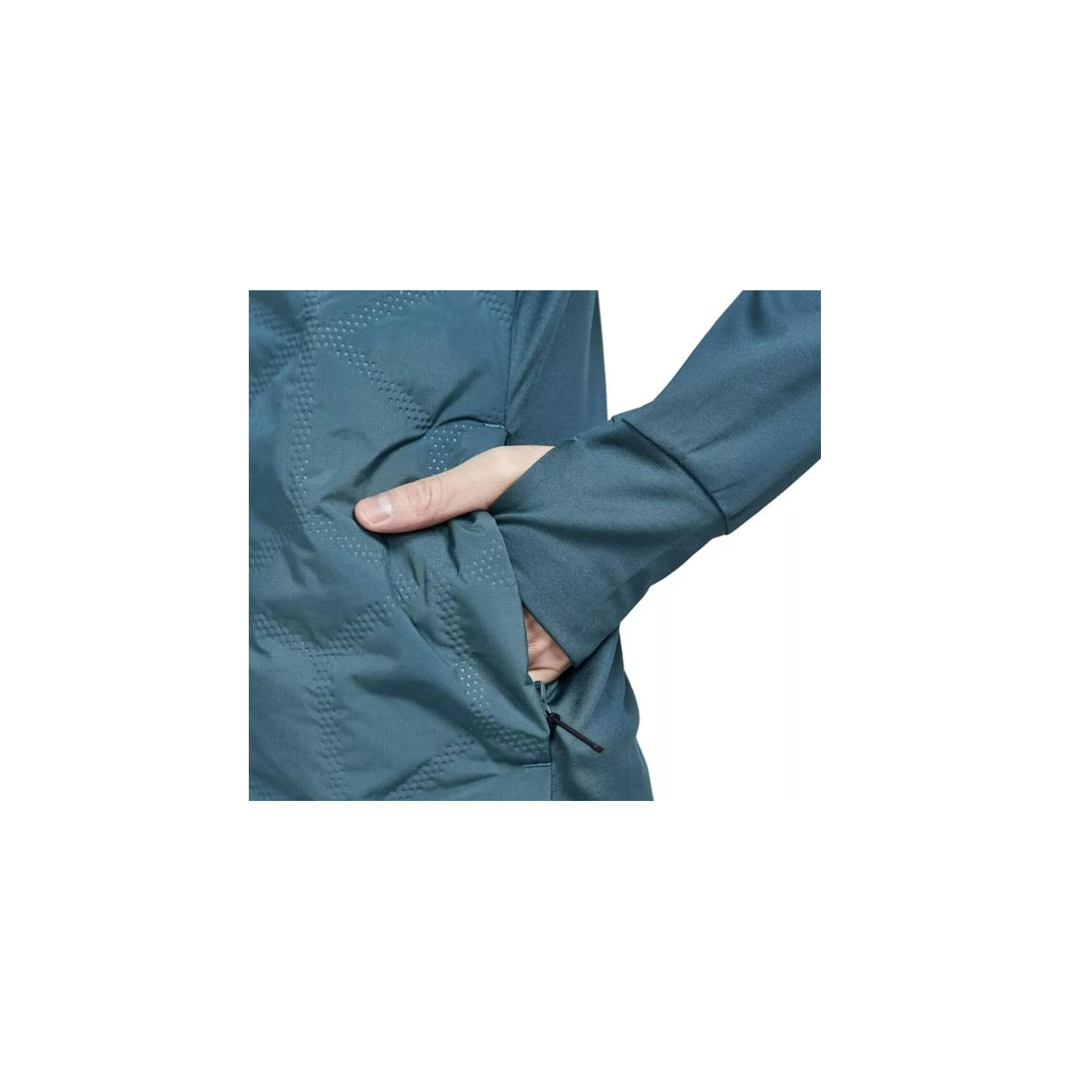 De plus, la veste est dotée d'une prise pour le pouce aux extrémités des manches et de poches zippées dissimulées.