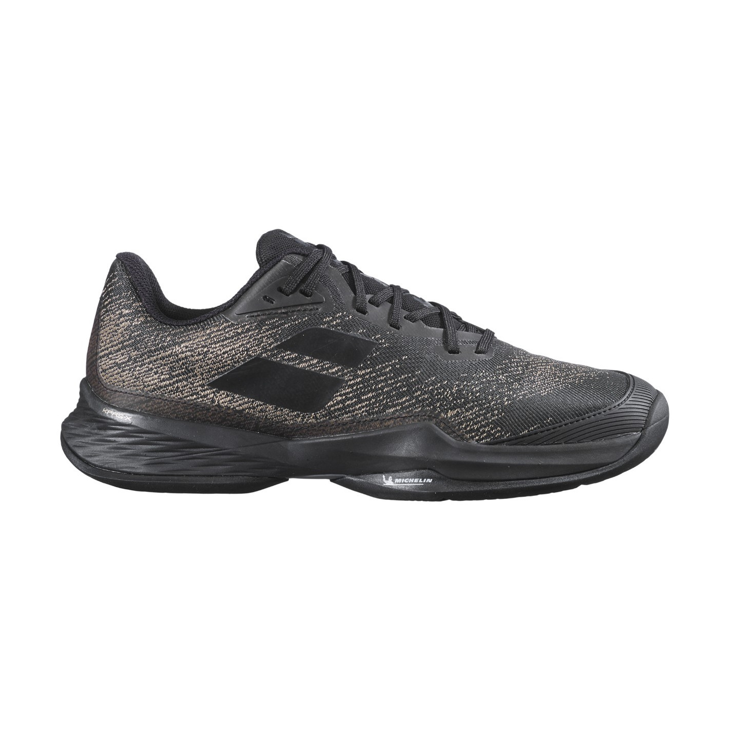 - Semelle Michelin : deux expertises : Michelin et Babolat pour une semelle adaptée à chaque pointure. Le nouveau crampon en S permet des déplacements rapides et multidirectionnels. Résistance renforcée lors des déplacements grâce à une formulation exclusive de caoutchouc Premium DIN20.