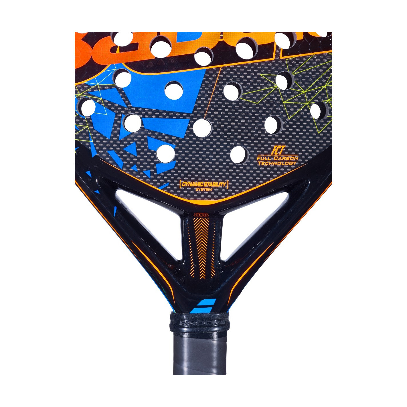 La jonction entre le manche et le tamis permet une plus grande stabilité (technologie Dynamic Stability System) pour plus de punch et de contrôle.