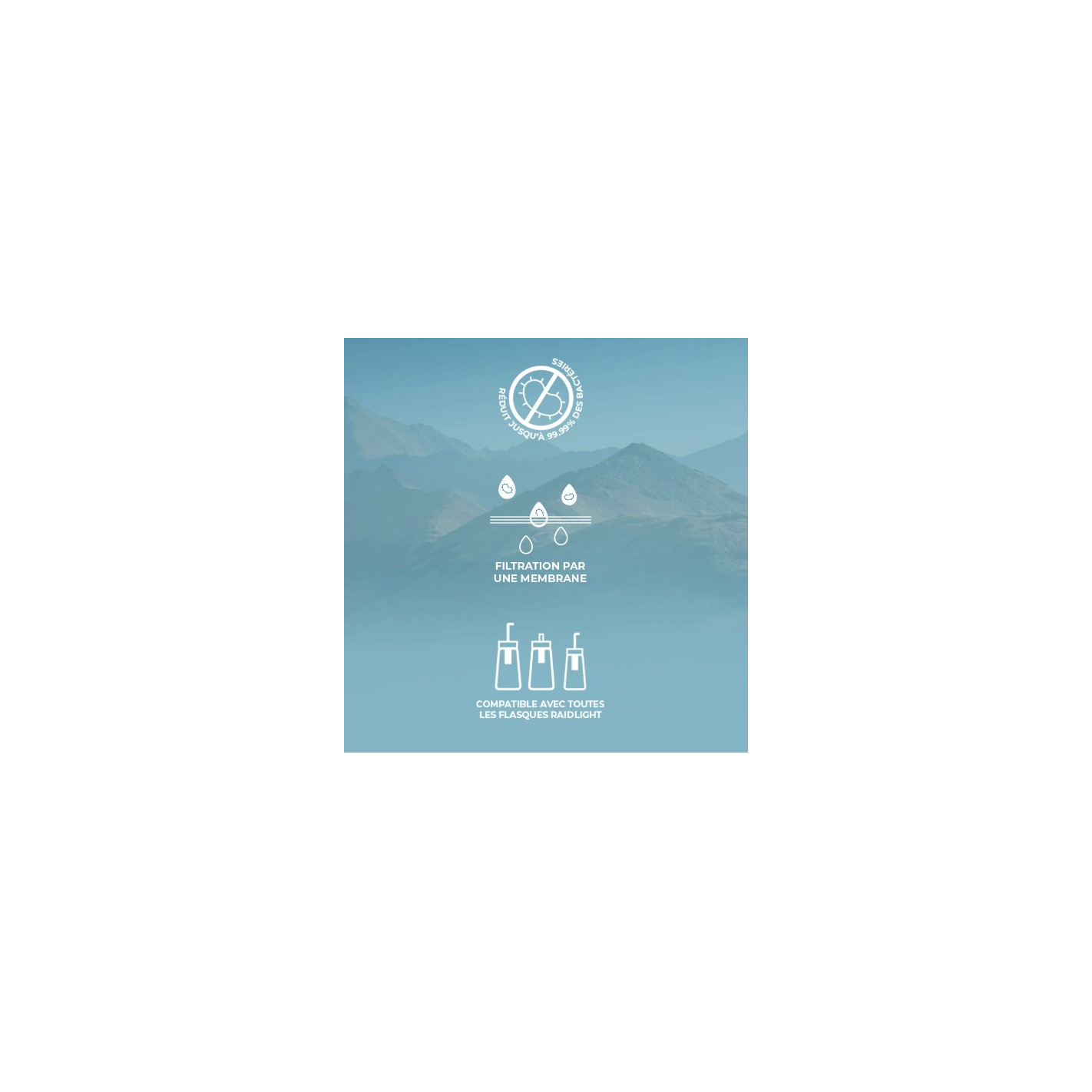 Idéal pour les expéditions prolongées comme les ultra-trails, le filtre Raidlight peut réduire jusqu'à 99.99% les niveaux de protozoaires et de bactéries en les capturant à l'aide d'une membrane à fibres creuses
