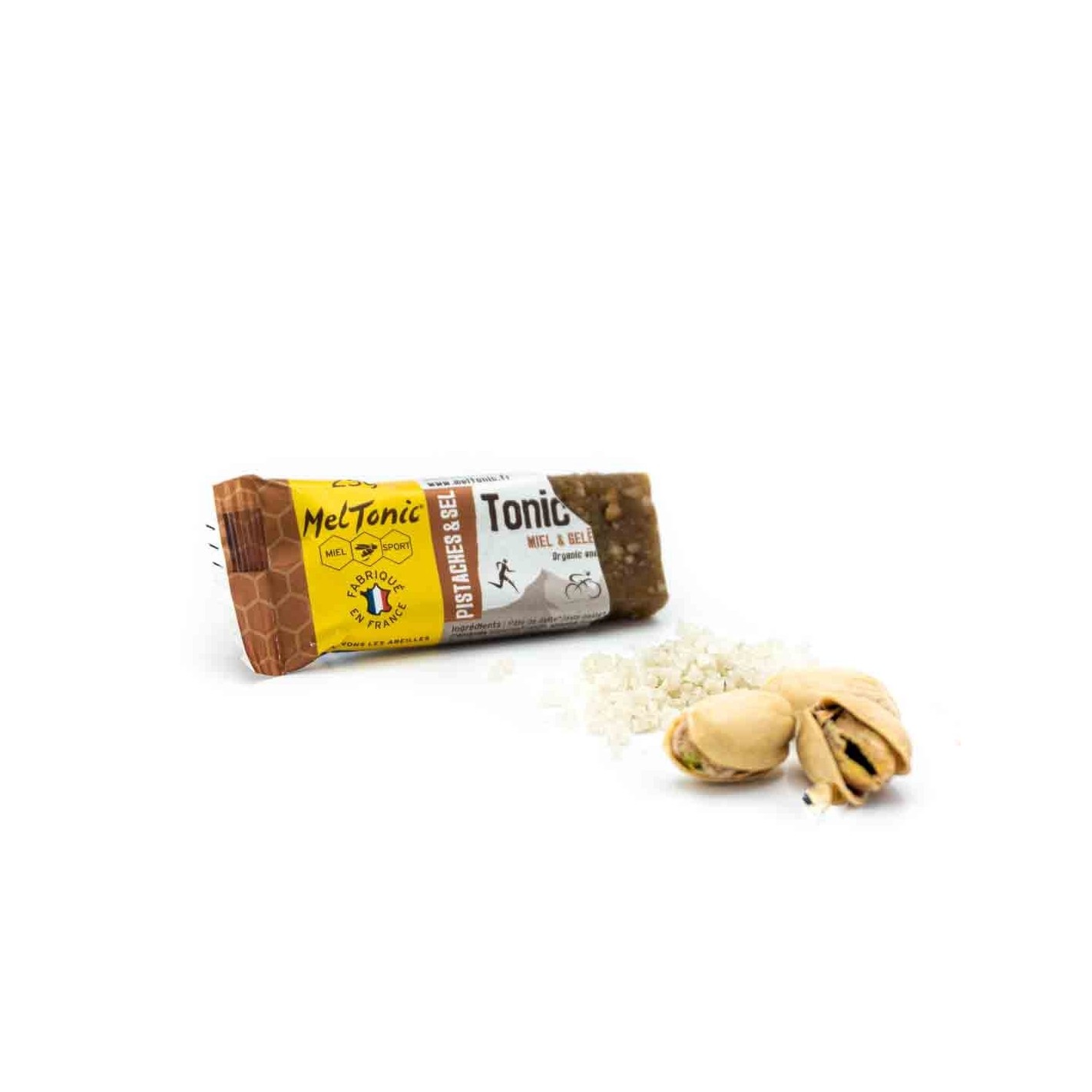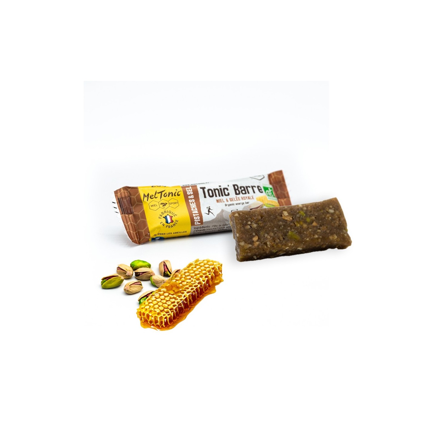 Les barres énergétiques BIO au Miel, Pistaches & Sel de Guérande réunissent la richesse des fruits de la Méditerranée et de l’artisanat français à consommer pendant l’effort sportif.