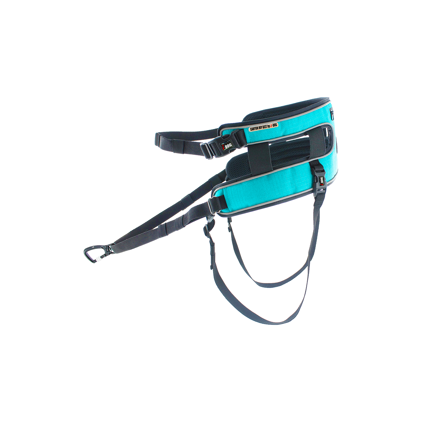 Le baudrier CANYON possède un design unique avec une partie inférieure (traction) reliée par des élastiques à la partie supérieure (ceinture), épousant parfaitement la gestuelle du coureur et ne provoquant aucune gènes lors de la traction.