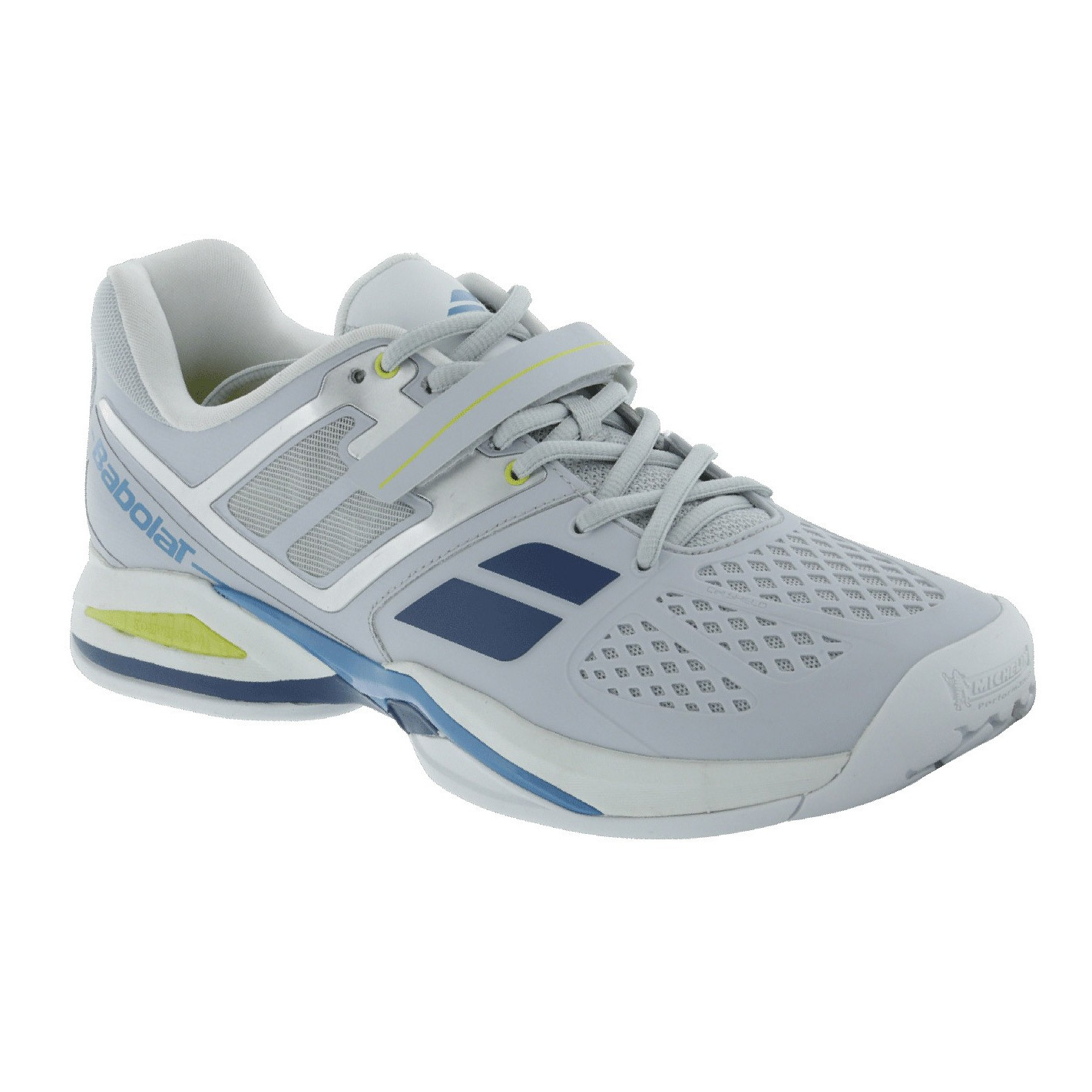 - Une semelle tout chevrons parfaitement adaptée à l'exigence du jeu sur terre battue.