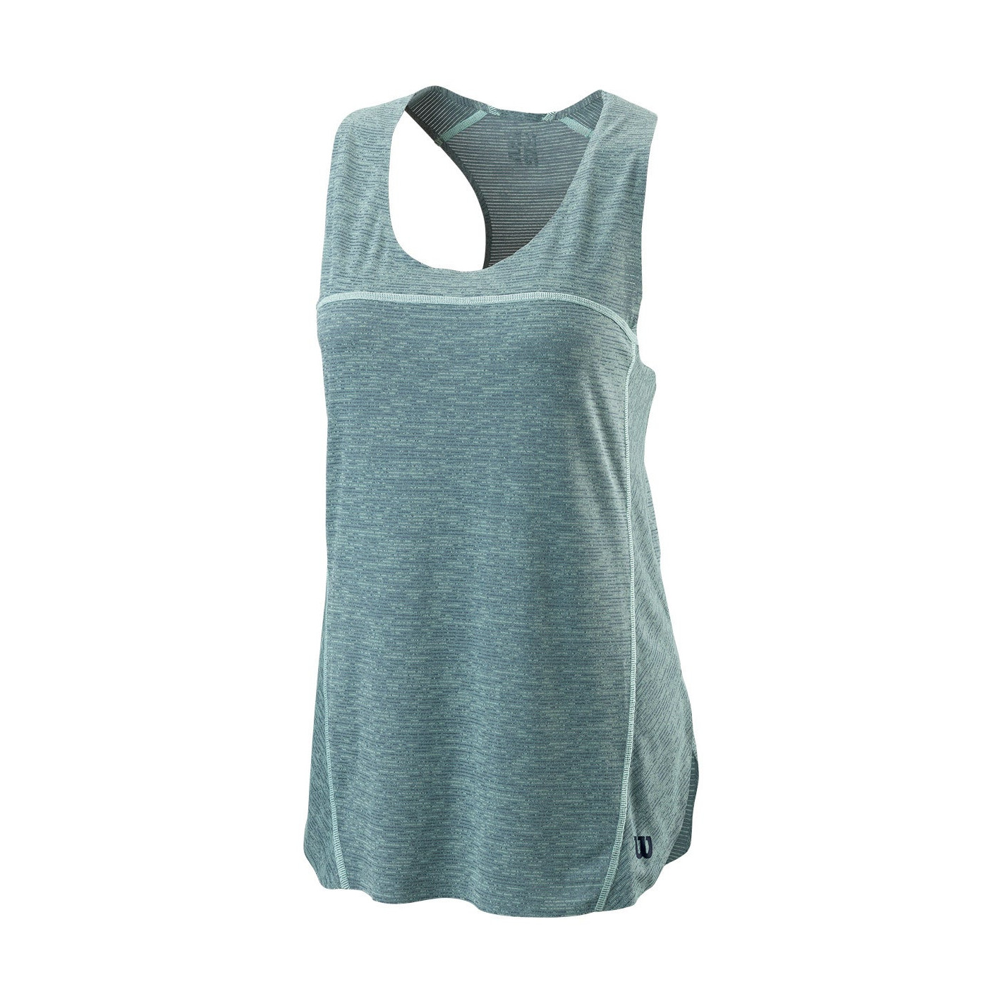 Il présente un dos nageur, une matière en mesh rayée, des coutures plates confortables, un ourlet sans coutures, une matière technique nanoWIK, des fentes arrondies sur les côté et un logo Wilson sur le coté gauche.