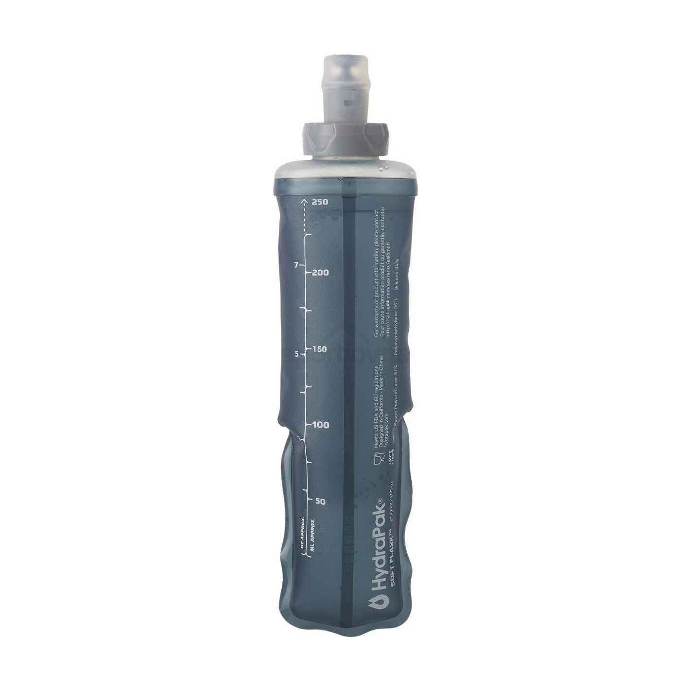 Cette softflask se comprime au fur et à mesure que vous buvez pour limiter le ballottement de l’eau et vous indiquer exactement le volume qu’il vous reste. Compatible avec tous les bouchons Salomon de 28 mm de diamètre.
