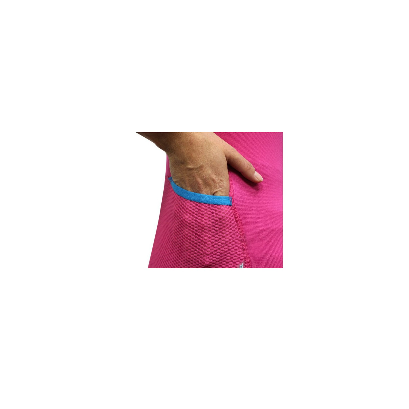 Il possède aussi des coutures plates qui évitent les frottements contre la peau et apportent plus de confort. Une bande siliconée est disposée en bas du maillot pour un maintien optimum et des renforts se trouvent sur les épaules pour le port d'un sac à dos.