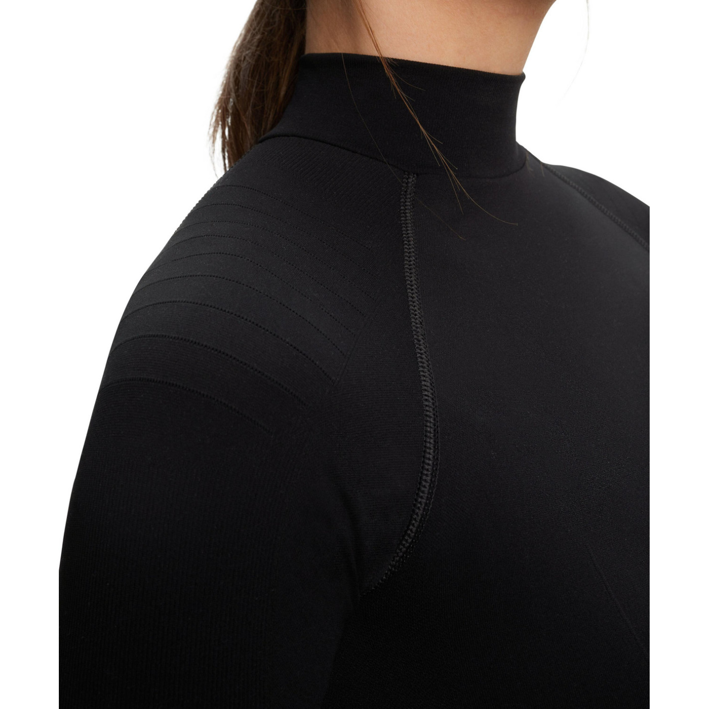 Ce top à manches longues et col roulé maintient le corps au chaud et au sec par temps doux à froid pour des niveaux d'activité plus élevés. La combinaison de matières absorbant l'humidité et légèrement réchauffantes assure une régulation parfaite de l'humidité et de la température.