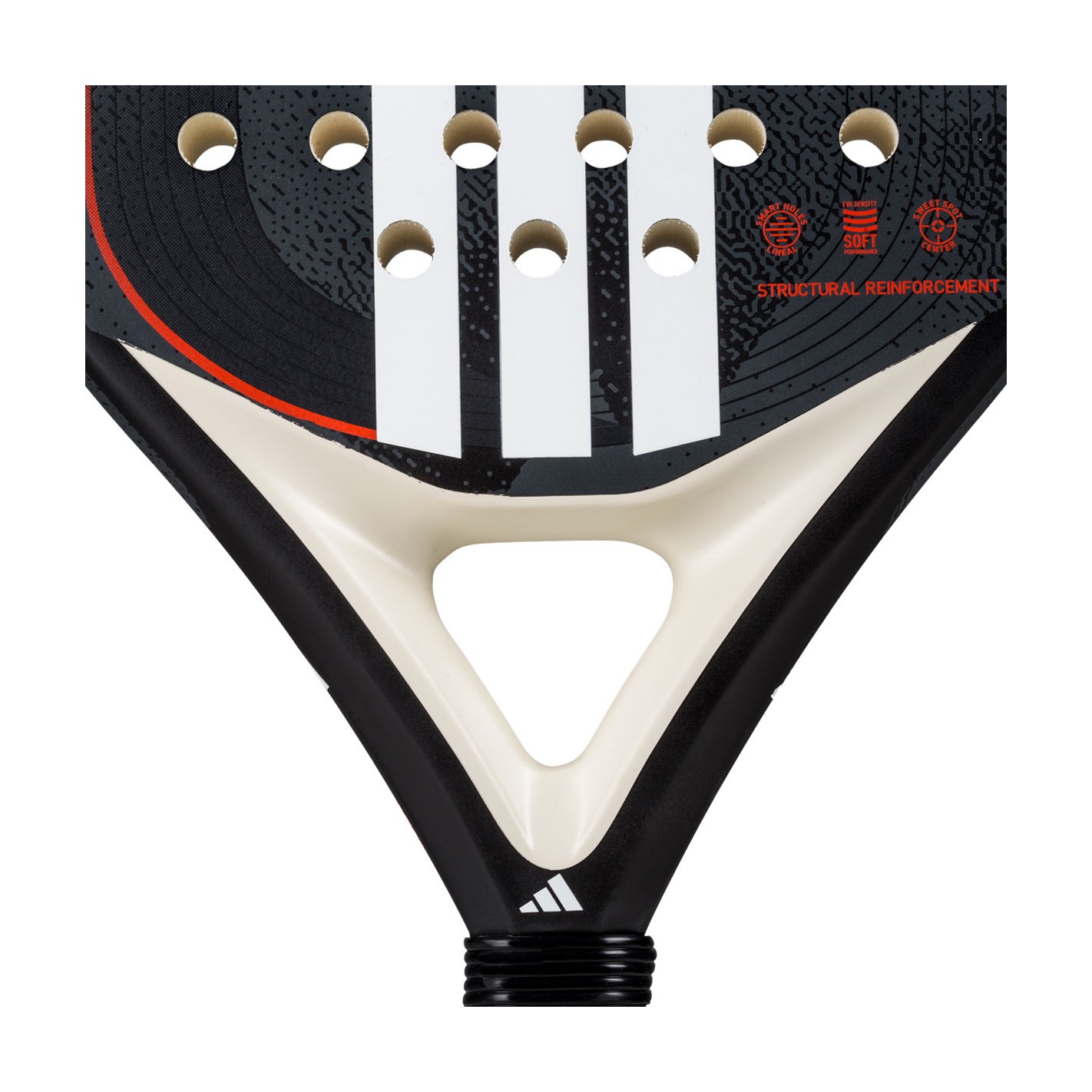 - Structural Reinforcement : Renforts sur la tête de raquette et au coeur pour augmenter la résistance en torsion.