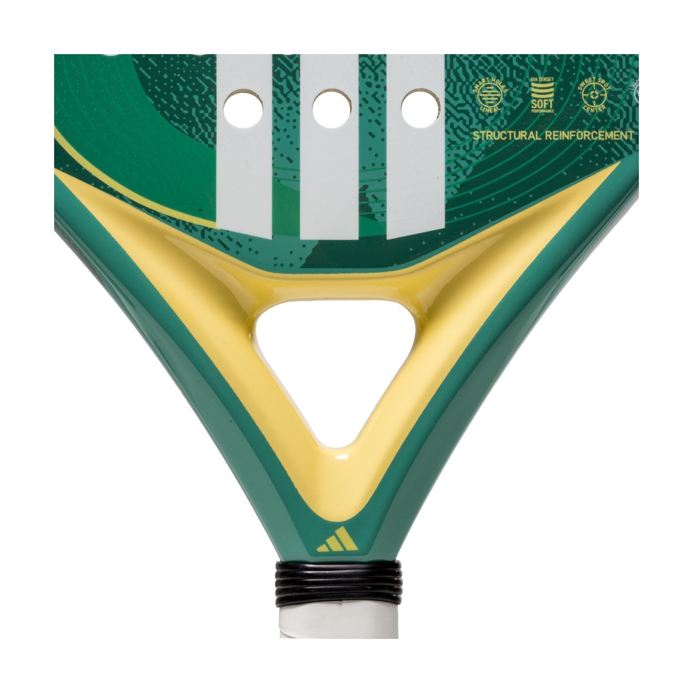 - Structural Reinforcement : Renforts sur la tête de raquette et au coeur pour augmenter la résistance en torsion.