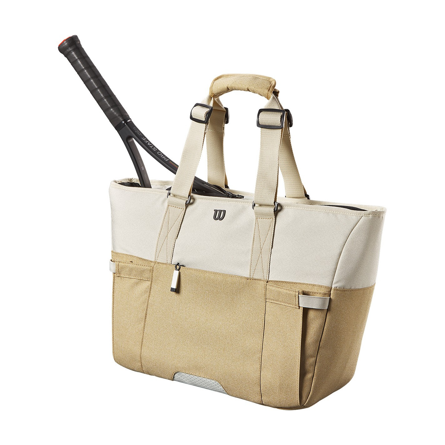 Ce sac cabas pour femme est idéal pour contenir tout ce dont vous avez besoin pour un entraînement ou un match de tennis. L’un des points forts de ce sac est qu’il est entièrement composé de matériaux recyclés, vous préservez ainsi la planète avec style. Il comporte de nombreux espaces de rangement pour tout organiser, notamment un compartiment partiel pour vos raquettes, un compartiment doté d’une doublure Thermoguard pour protéger les aliments ou les petits objets du soleil, et une poche doublée en polaire pour ranger les petits objets, comme un téléphone, un portefeuille ou des clés.