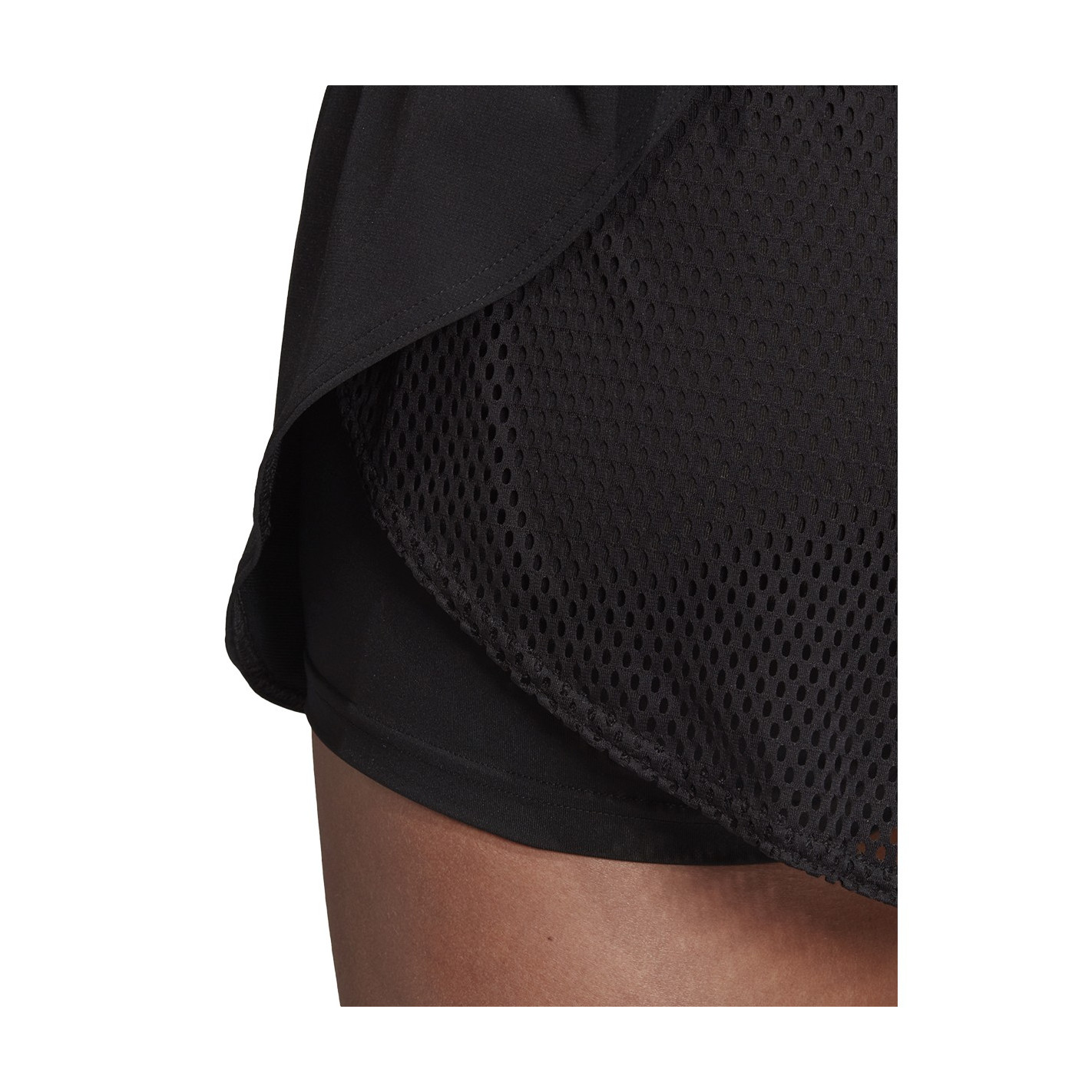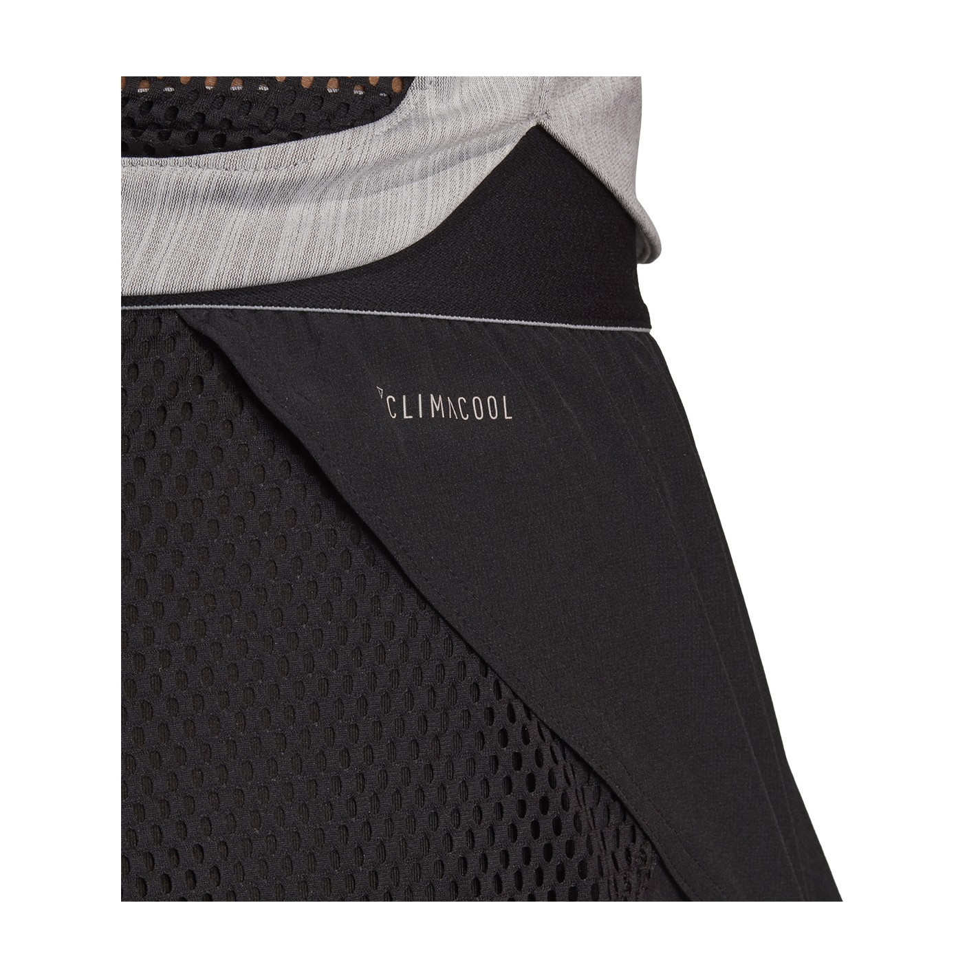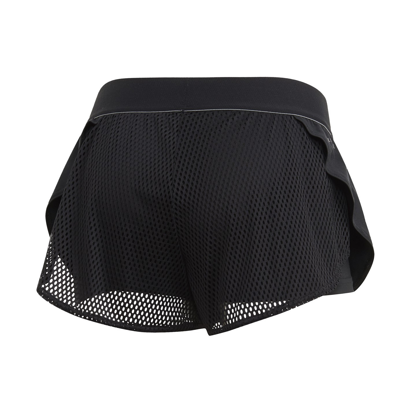 - Short extérieur : taille élastique. Empiècement arrière en mesh aéré. Coutures latérales superposées.