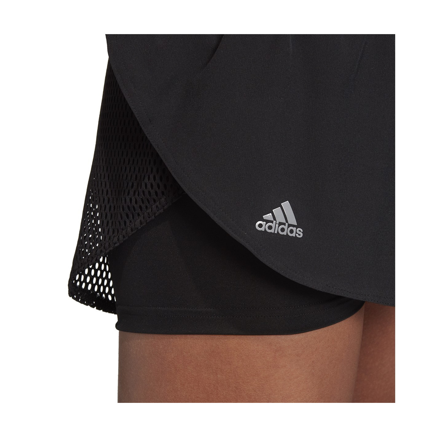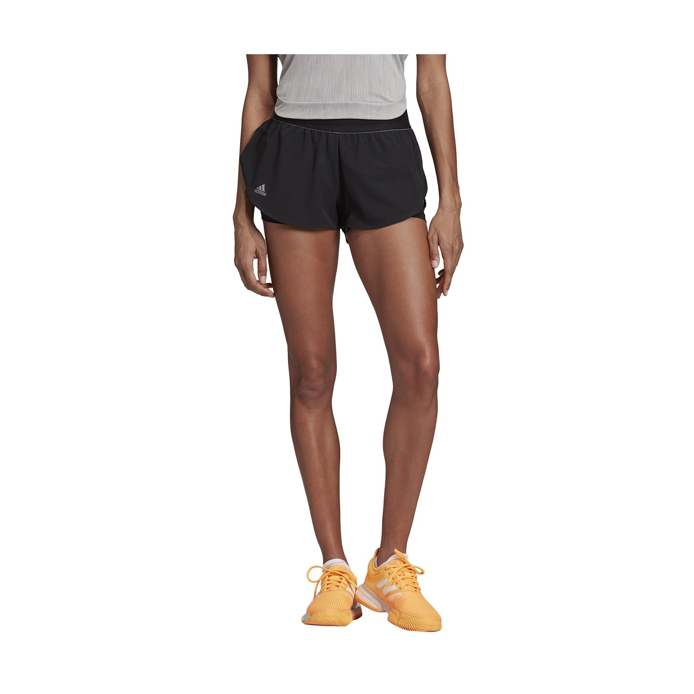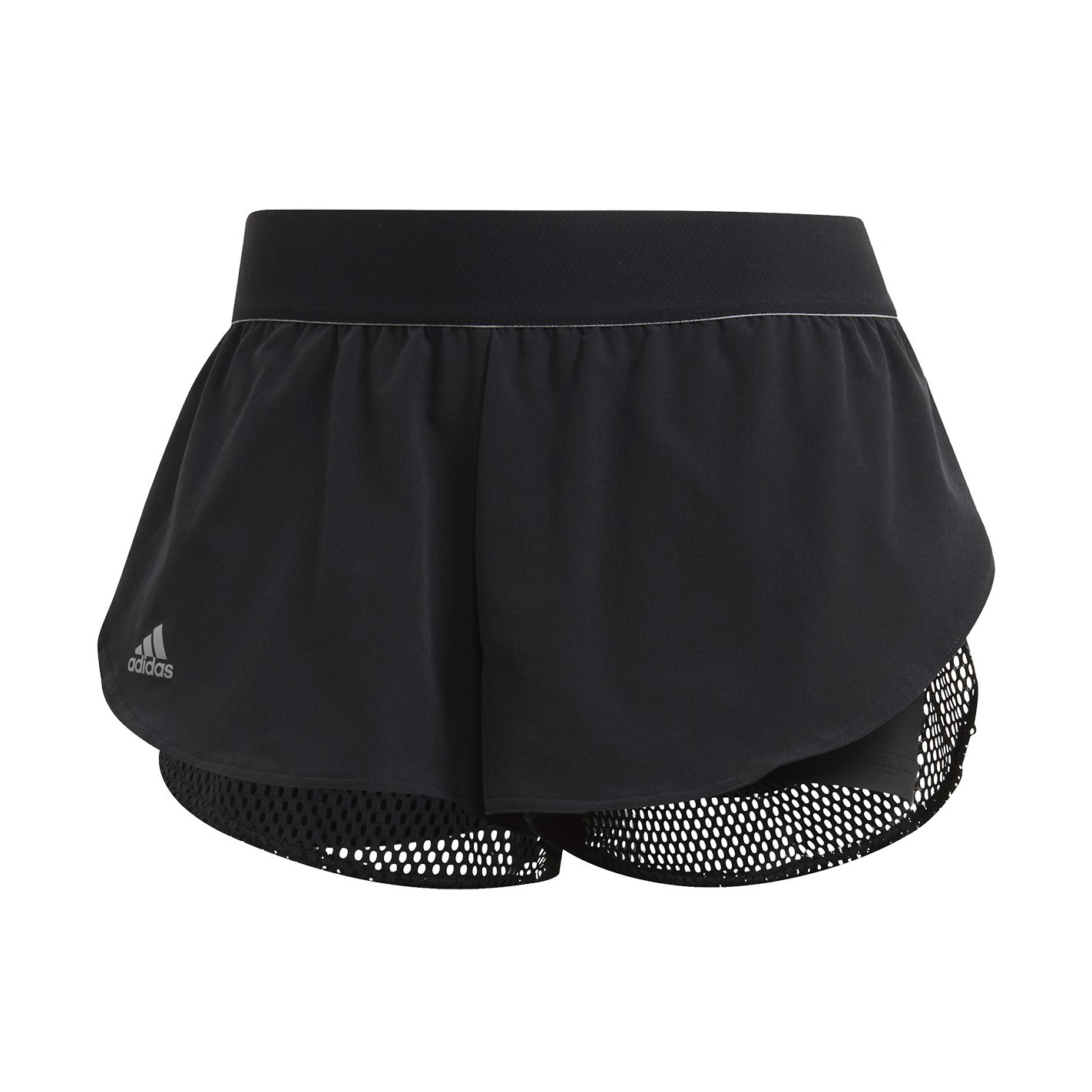 - Short extérieur : taille élastique. Empiècement arrière en mesh aéré. Coutures latérales superposées.