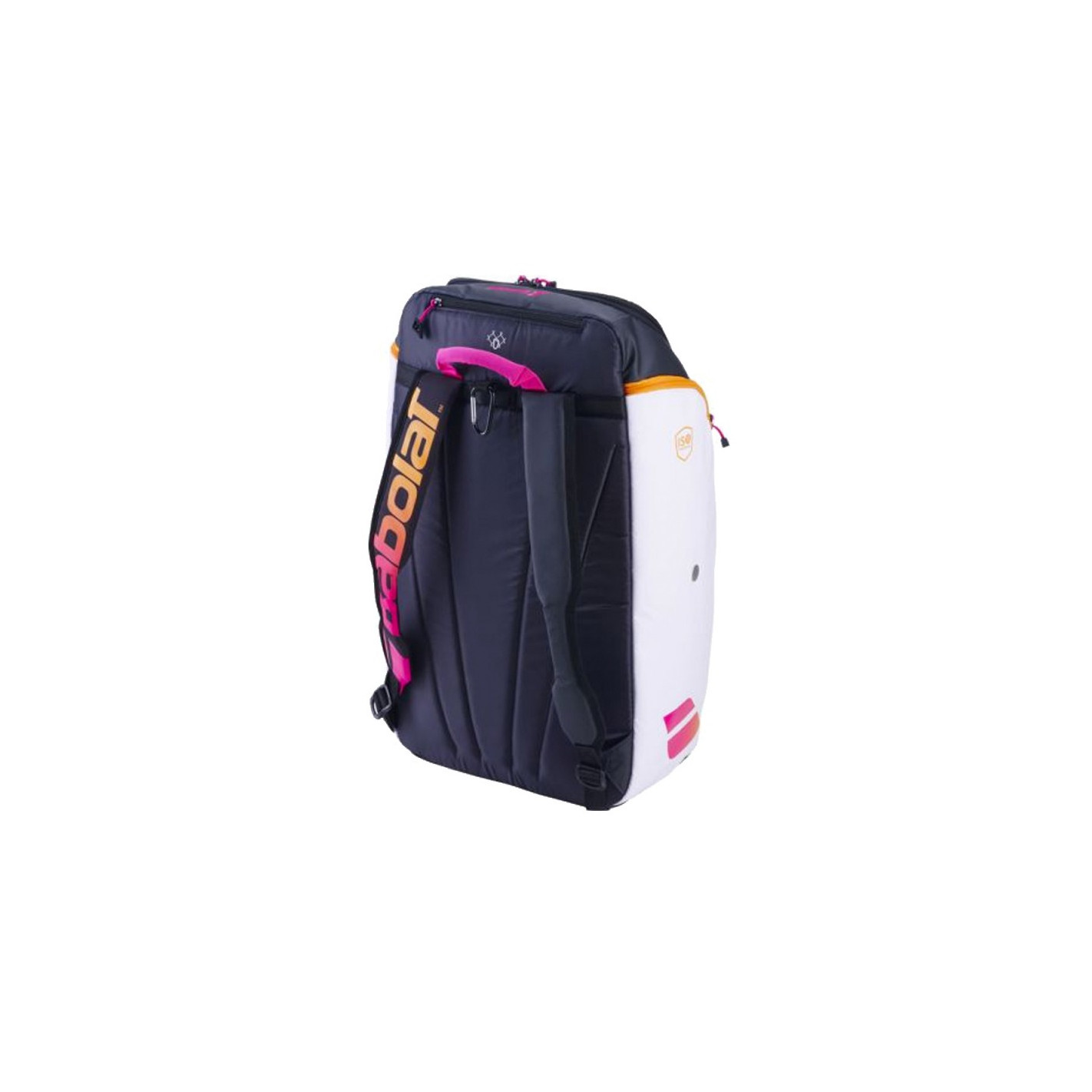 Pas assez de place sur le banc pour poser votre sac ? Nous avons ajouté un mousqueton à l’arrière du sac afin de pouvoir l’accrocher au grillage du terrain et accéder plus facilement à tout votre équipement de PADEL !