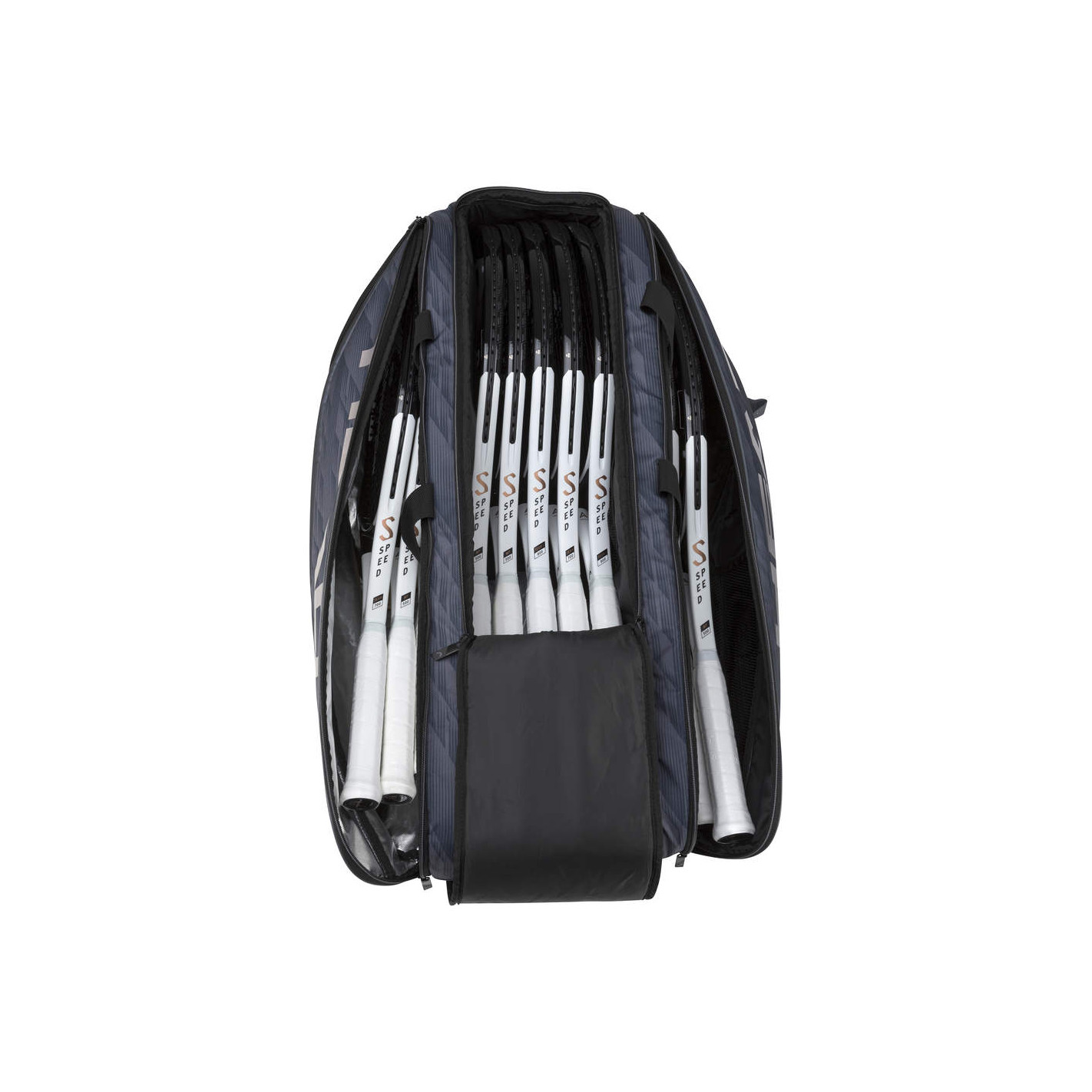 Revisité avec un nouveau design élégant, gris et noir, qui intègre un imprimé Speed, ainsi que la signature et le logo de Novak Djokovic, le SAC DE TENNIS DJOKOVIC 12R MONSTERCOMBI revendique ses standards impeccablement élevés. La forme distinguée avec des bords arrondis donne au sac un aspect haut de gamme qui s’adresse aux fans de Djokovic, aux joueurs qui optent pour la gamme de raquettes SPEED qu’il promeut, et à tous ceux qui recherchent de hautes performances. Il y a beaucoup d’espace dans ce sac, qui peut contenir jusqu’à 12 raquettes dans l’un des compartiments principaux équipés de la technologie de contrôle de la température CCT+ qui les protège des températures extrêmes.