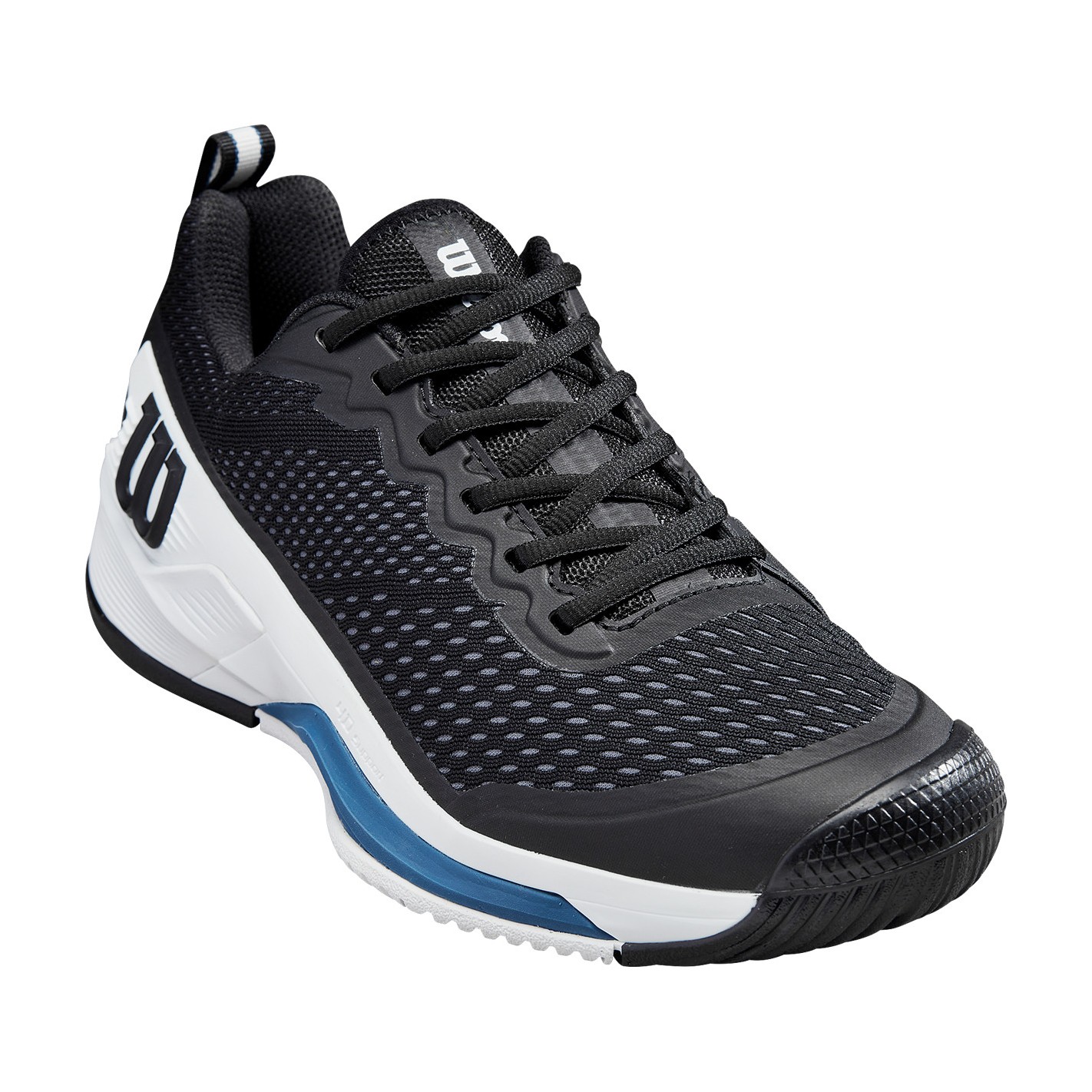 Cette chaussure de tennis Wilson Rush Pro 4.5 Toutes Surfaces poursuit la route tracée par le modèle 4.0 tout en améliorant certains points afin de gagner encore plus en performance.