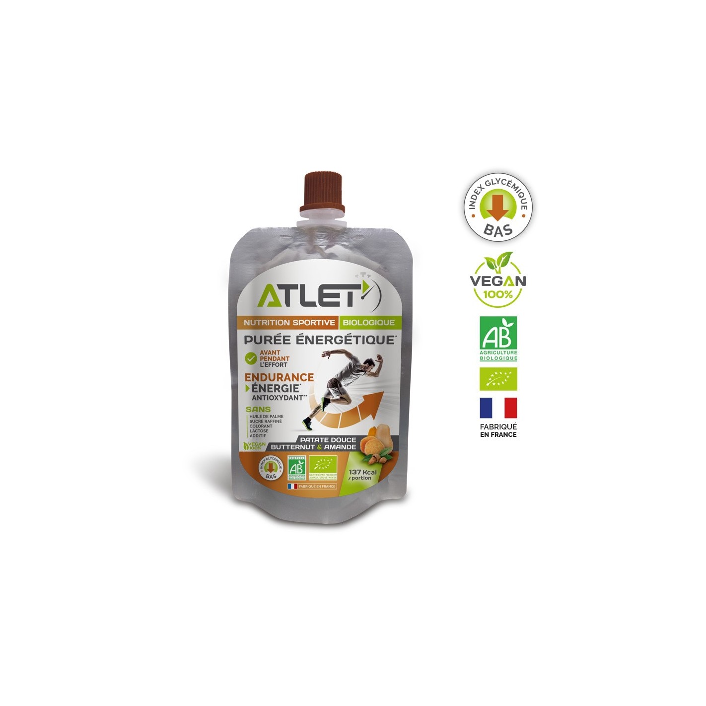 La purée énergétique biologique ATLET composée en majorité de nutriments végétaux permet d’apporter un complément énergétique avant et pendant vos entrainements ou compétitions.