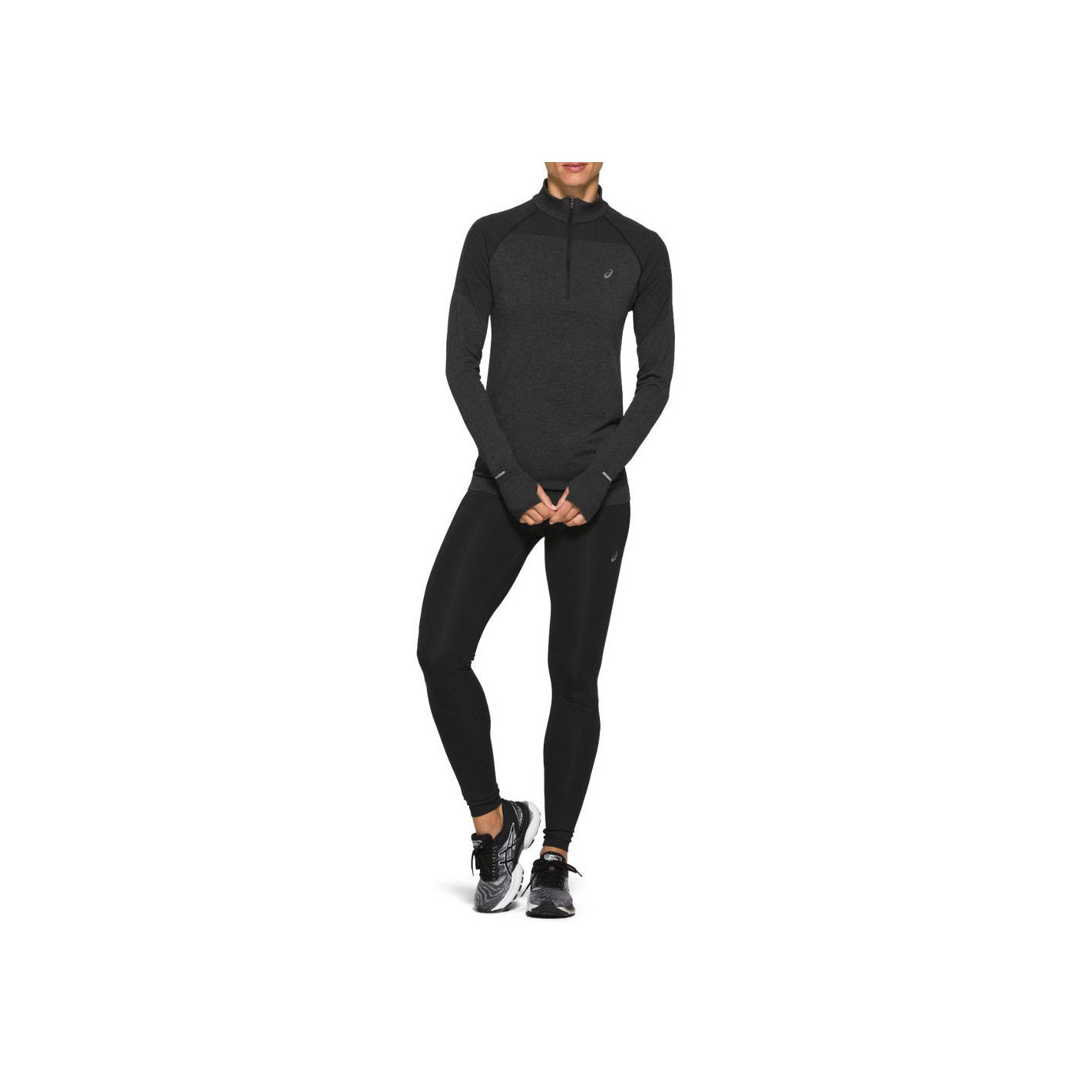 T-Shirt RUN Manches Longues ASICS Femme RACE Seamless 1/2 Zip Perf Noir AH 2020