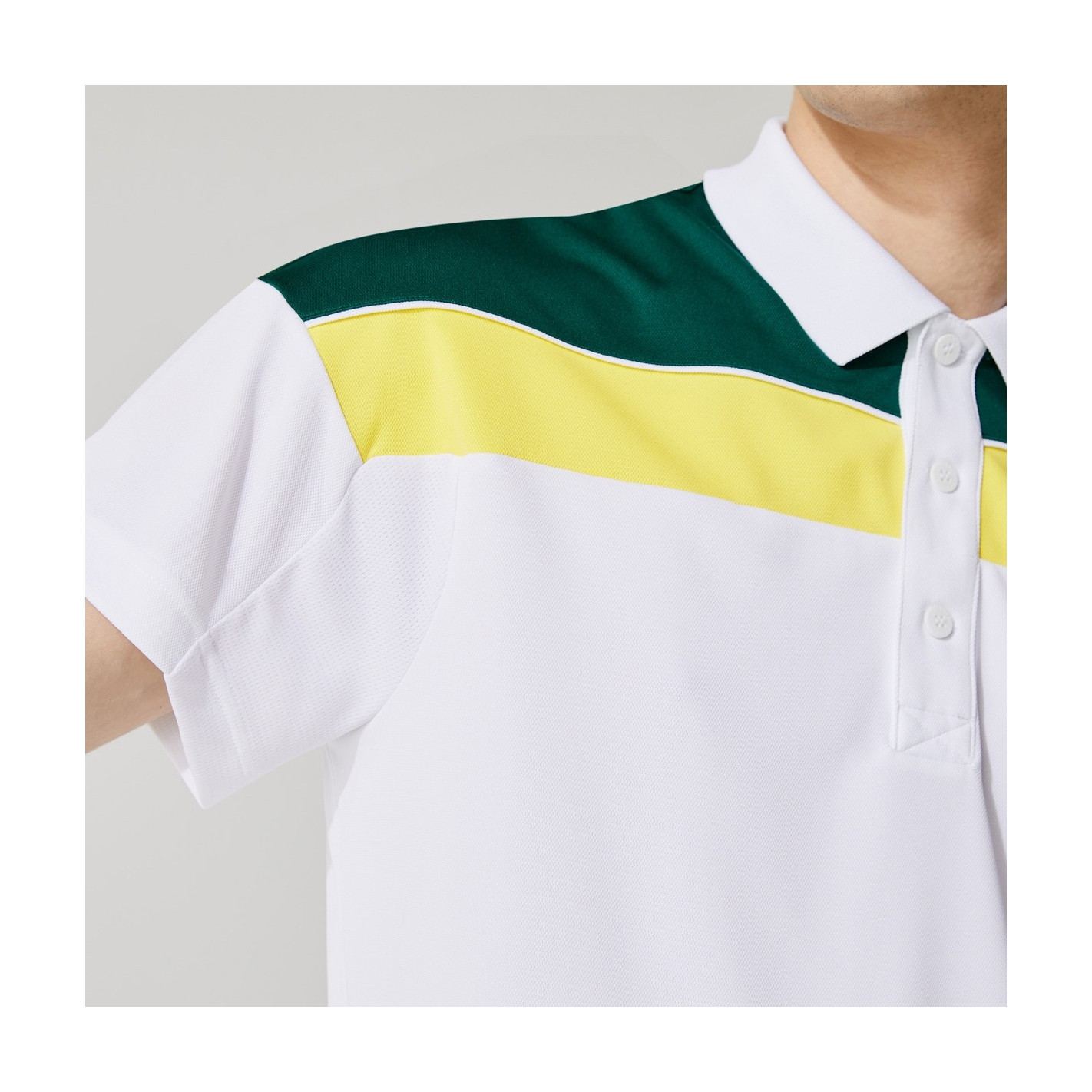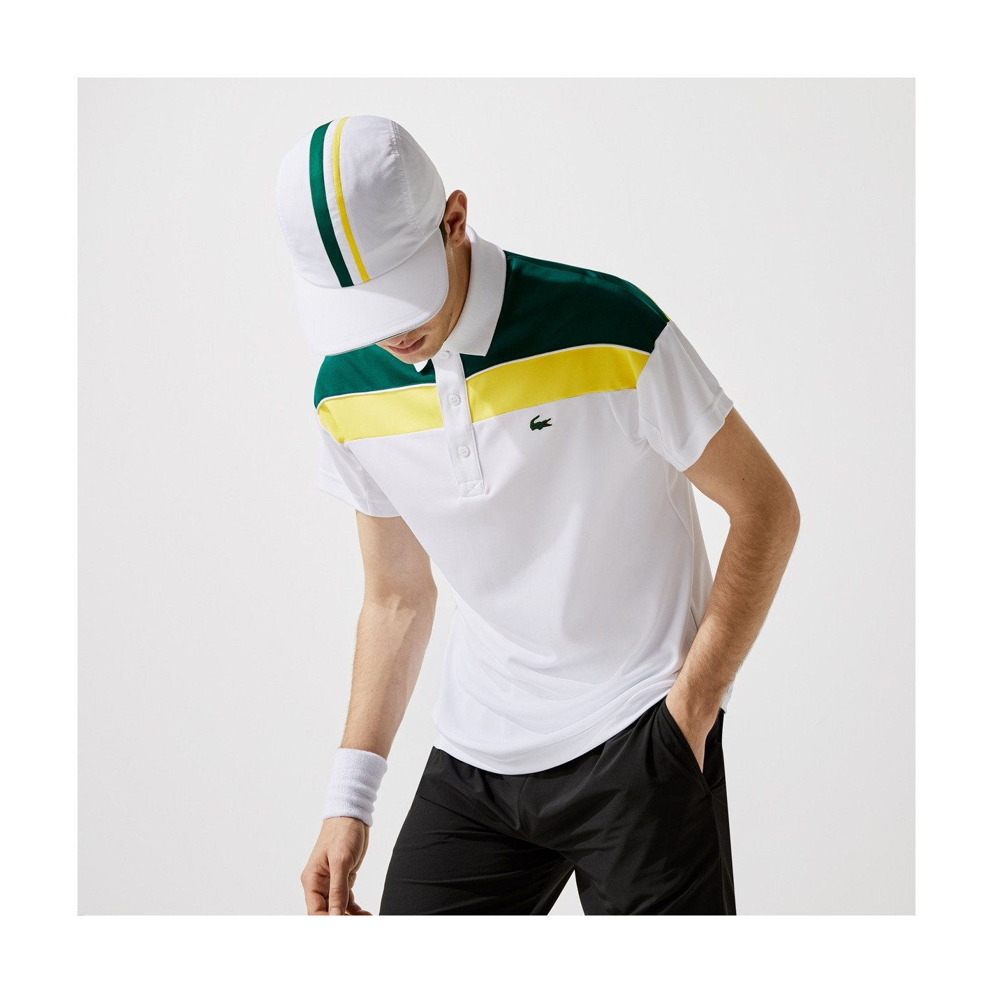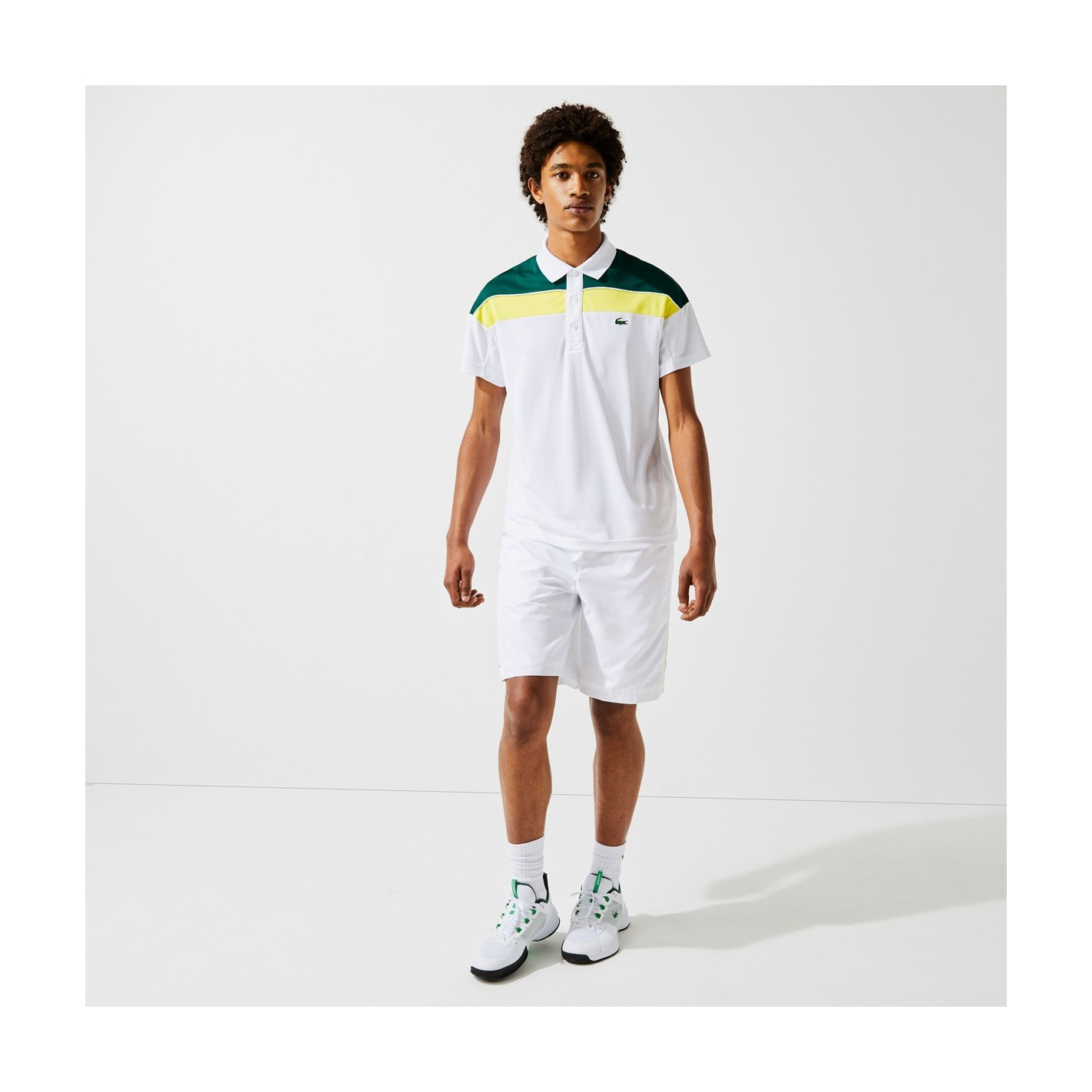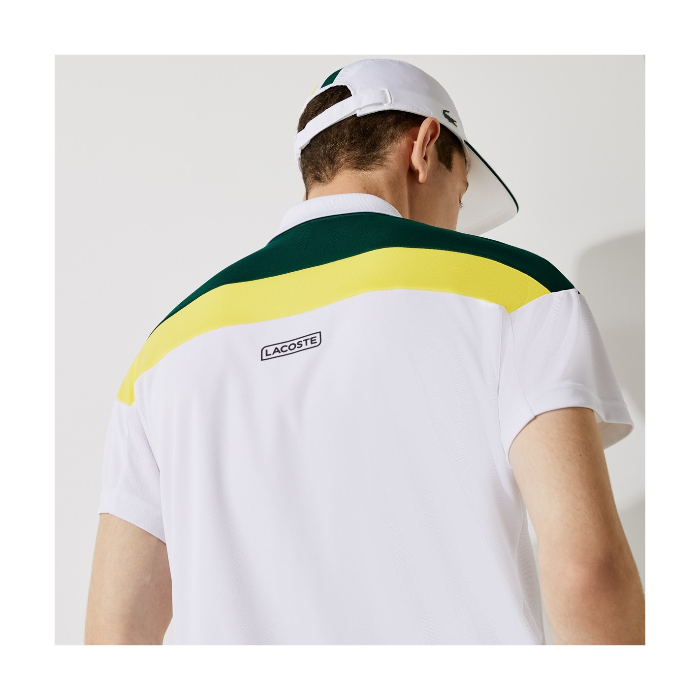 Cap sur la victoire, avec ce polo de tennis innovant célébrant l'héritage Lacoste. Composé d'un empiècement en mesh respirant et de piqué technique doté de la technologie Shin Cool, ce modèle promet de réguler la température et l'humidité pendant l'effort.