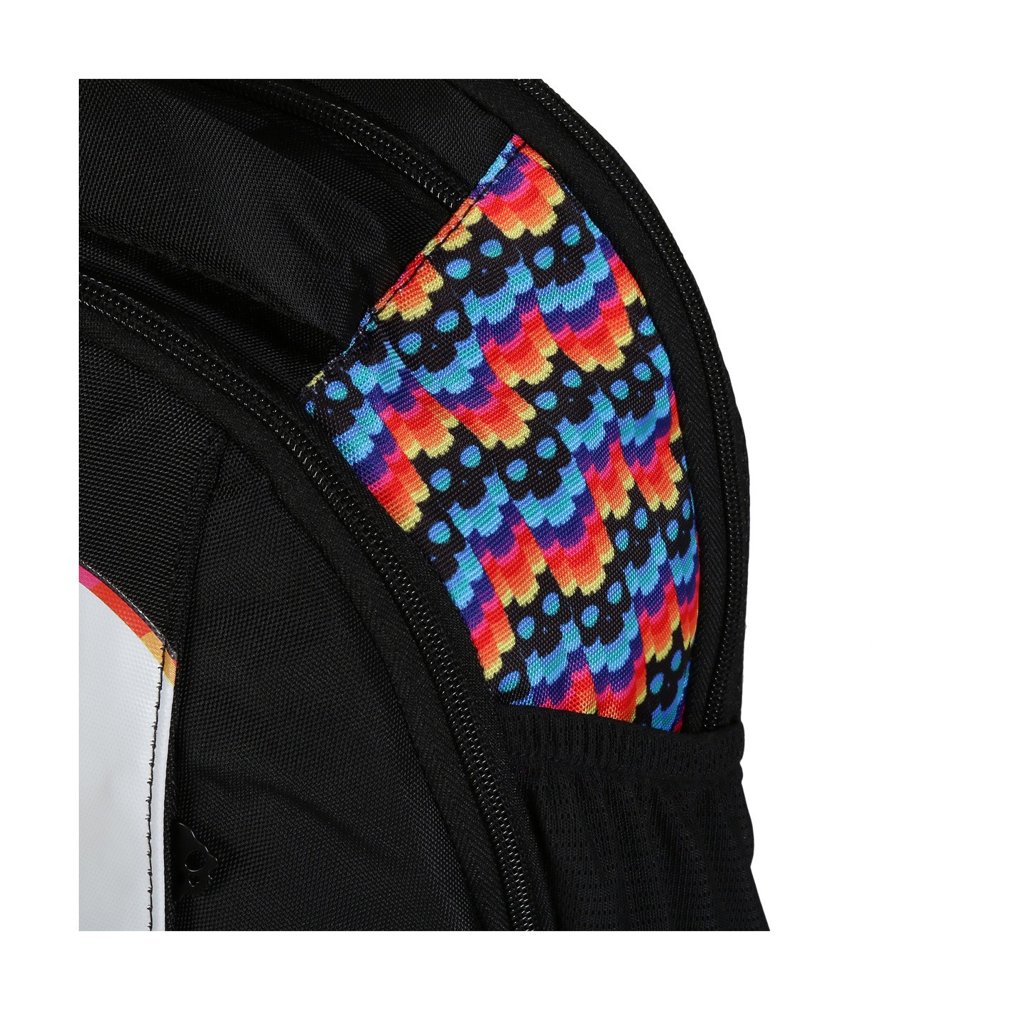 Pour vos chaussures, une poche à chaussures aérée est accessible par le bas et pour votre gourde et votre tube de balles un pochon est présent de chaque côté.