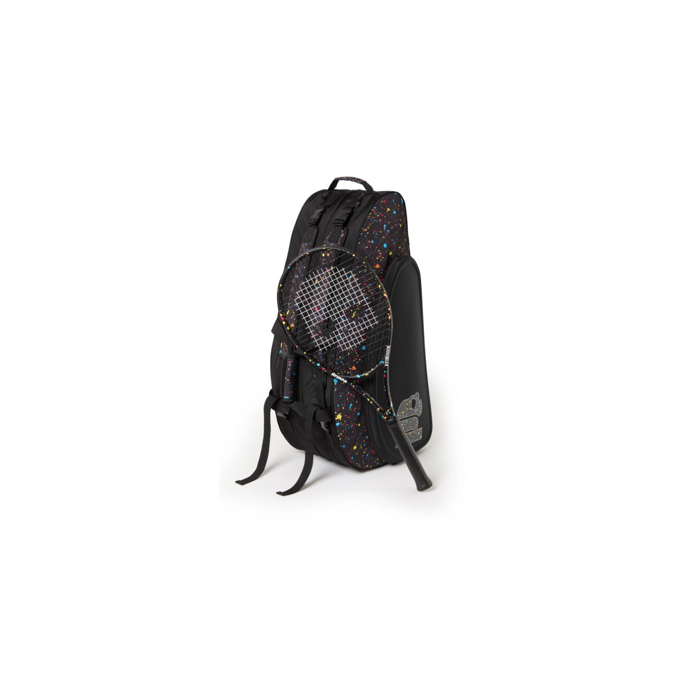 Avec un champ de 9 raquettes, Hydrogen Spark Bag est représenté par un graphisme intégral sur le thème des gouttes de peinture qui fait écho au style de la raquette, pour un mix & match parfait !